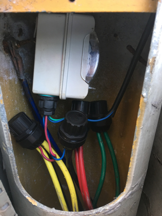 灯杆内安装了带防水盒的漏电开关及专用电缆防水接头的照片