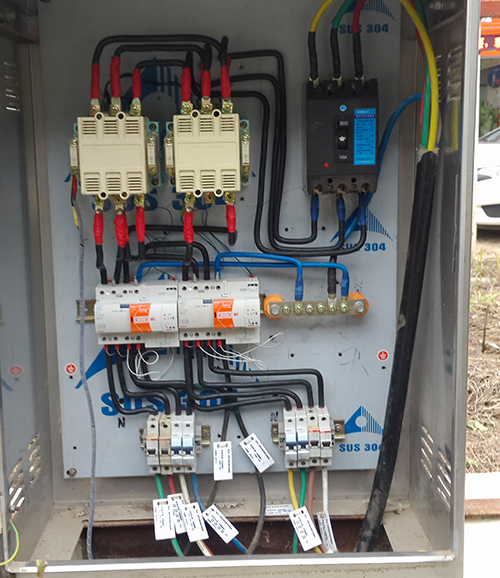 本方案选用瑞思达品牌的智能漏电开关GW94939R ,4P/63A/300mA,具有自动复位功能,于3#箱的两条出线回路上各安装一套。瑞思达智能漏电开关采用电磁式脱扣器,一方面可以在缺相的情况下正常工作,不会出现拒动的情况,安全性更高;另一方面极少误动作提高可靠性。万一发生雷击跳闸事件,智能漏电开关也可以自动合闸。在电缆破损、接头漏电等情况下自动切断电源确保安全,并持续监测线路绝缘情况,一旦线路绝缘恢复又可以自动合闸,使用该漏电开关可以大大减少维护工作量。