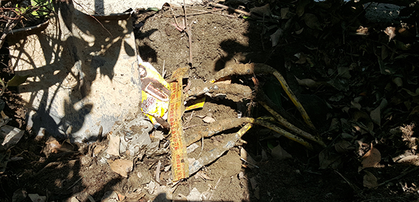 用电缆故障测试仪找到的地下电缆破损点。